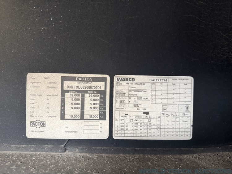 Pacton TXD-339 | Curtainside Tautliner Hardwood floor + Alu Sideboards | 3 Axle | semi-trailer 0506 | 2011