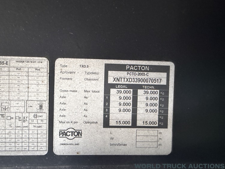 Pacton TXD-339 | Curtainside Tautliner Hardwood floor + Alu Sideboards | 3 Axle | semi-trailer 0517 | 2011