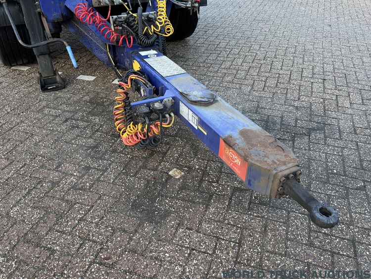 . [NEDERLANDS] 2 As Dolly Aanhangwagen In goede staat, technisch en optisch Wielbasis: 491 cm In lange en zware voertuigcombinaties toepasbaar. Maximum massa trekkend voertuig: 40000 kg - max. massa oplegger geremd: 40000 kg Afstand hart koppeling tot hart koppelschotel: 420 cm Remschijven + remblokken 2 assen vervangen 04-2025 Remboosters vervangen 04-2025 Regio Zutphen Beschikbaar week 08 [ENGLISH] 2-Axle Dolly Trailer In good condition, both technically and visually Wheelbase: 491 cm Suitable for long and heavy vehicle combinations. Maximum towing vehicle weight: 40,000 kg - Max. braked trailer weight: 40,000 kg Distance from center of coupling to center of fifth wheel: 420 cm Brake discs and brake pads on 2 axles replaced 04-2025 Spring brake cylinders replaced 04-2025 Near Zutphen (NL) Available week 08 [DEUTSCH] 2-achsiger Dolly-Anhänger Technisch und optisch in gutem Zustand Radstand: 491 cm Geeignet für lange und schwere Fahrzeugkombinationen Maximales Zugfahrzeuggewicht: 40.000 kg - Max. zulässiges Gesamtgewicht des gebremsten Anhängers: 40.000 kg Abstand Mitte der Kupplung zur Mitte der Sattelkupplung: 420 cm Bremsscheiben und Bremsbeläge an 2 Achsen wurden im April 2025 erneuert. Federbremszylinder wurden im April 2025 erneuert. Nähe Zutphen (NL) Verfügbar Woche 08 |